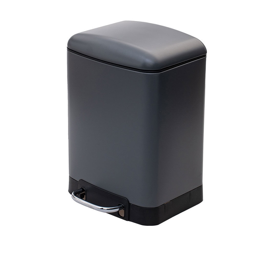 Χαρτοδοχείο Μπάνιου Ορθογώνιο Μεταλλικό Γκρι Ματ 6Lt Soft Close 22,4x22,5xH32,3cm εstia Home Art 02-7140